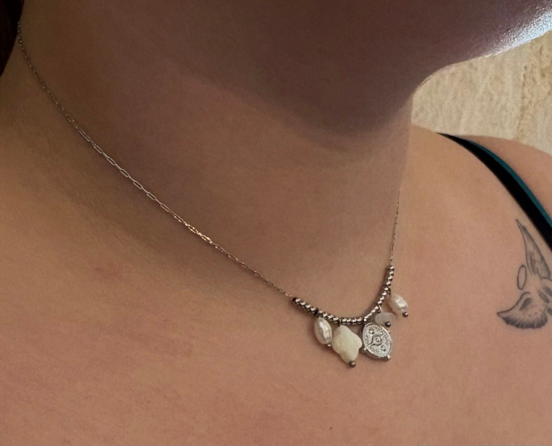 Collier avec plusieurs pendentif. Idéal pour toute les sorties. De haute qualité grâce à sa fabrication en acier inoxydable. pour tout type de peau et parfait pour votre style de vie. ref 66228