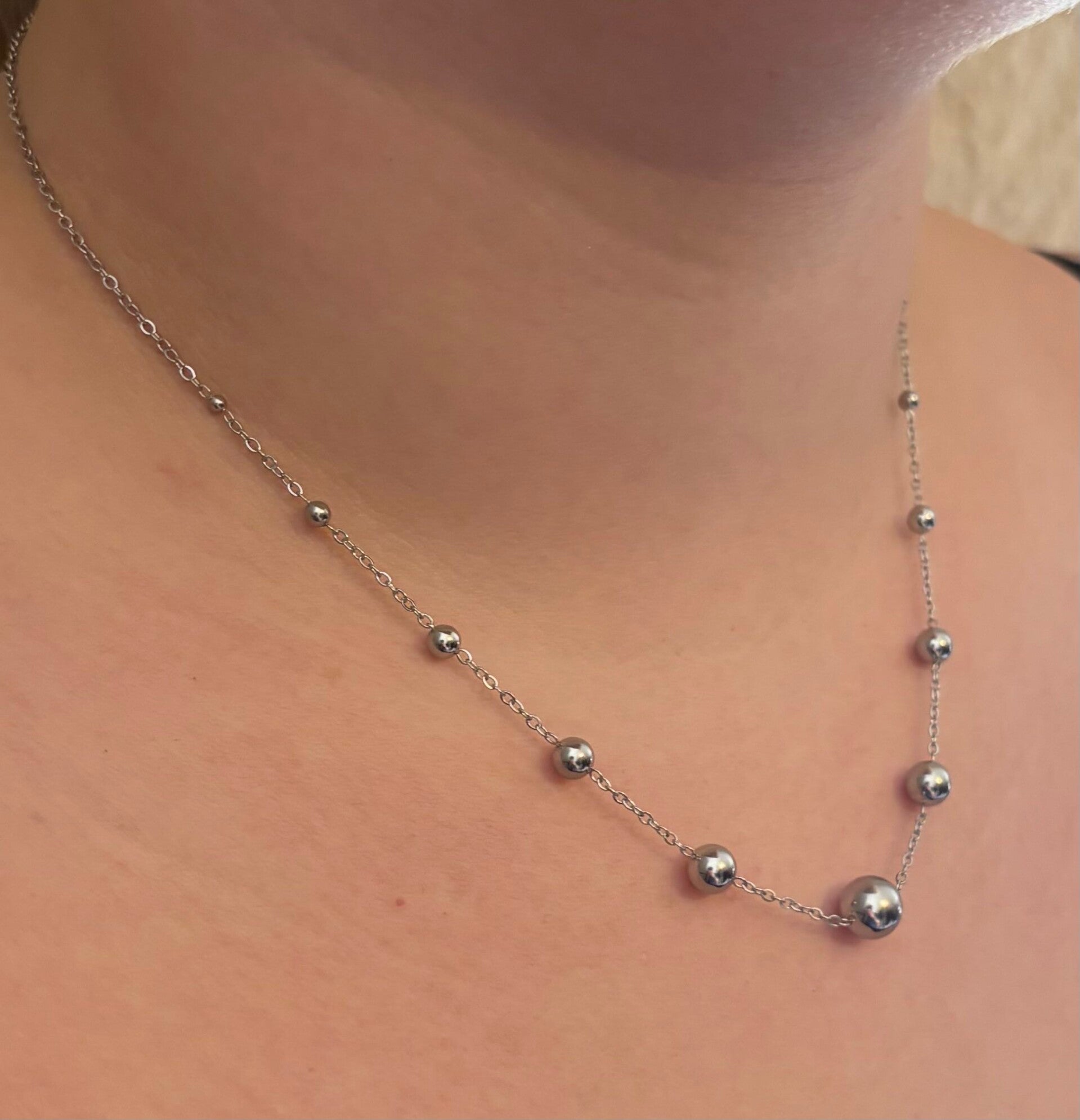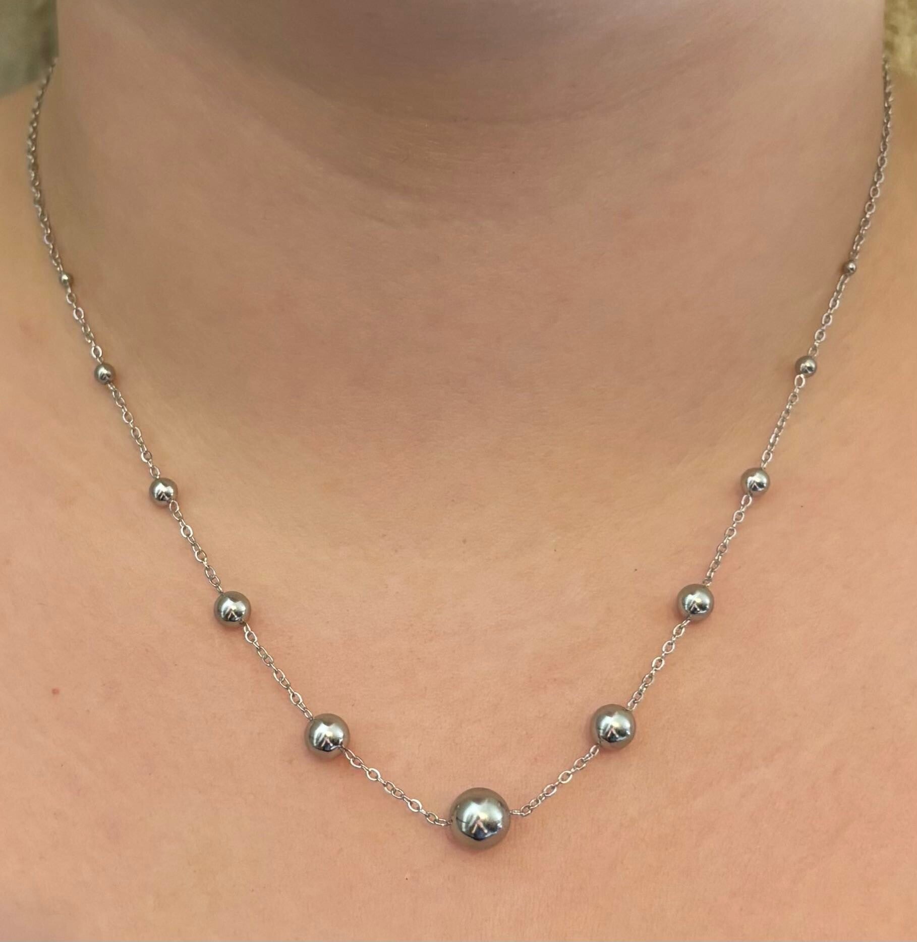 Magnifique collier bille couleur argent. de très bonne qualité grâce à sa fabrication en acier inoxydable. Parfait pour tout sortie et pour pimenté votre style. ref 68691