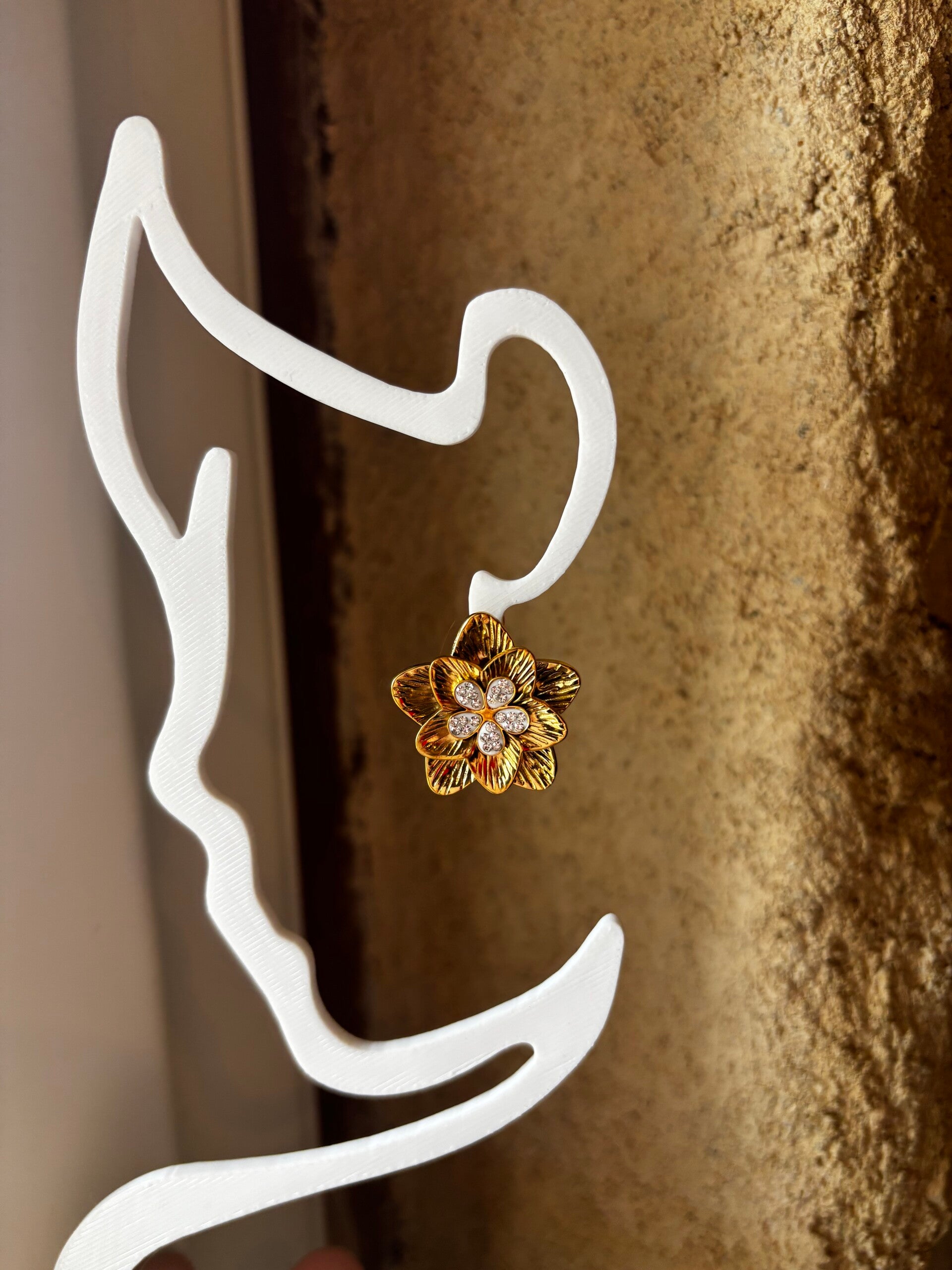 Magnifique boucle d'oreille fleur triple. D'une brillance exceptionnelle. Ne terni pas dans le temps. Résistant à l'eau. Fabriquer en acier inoxydable
