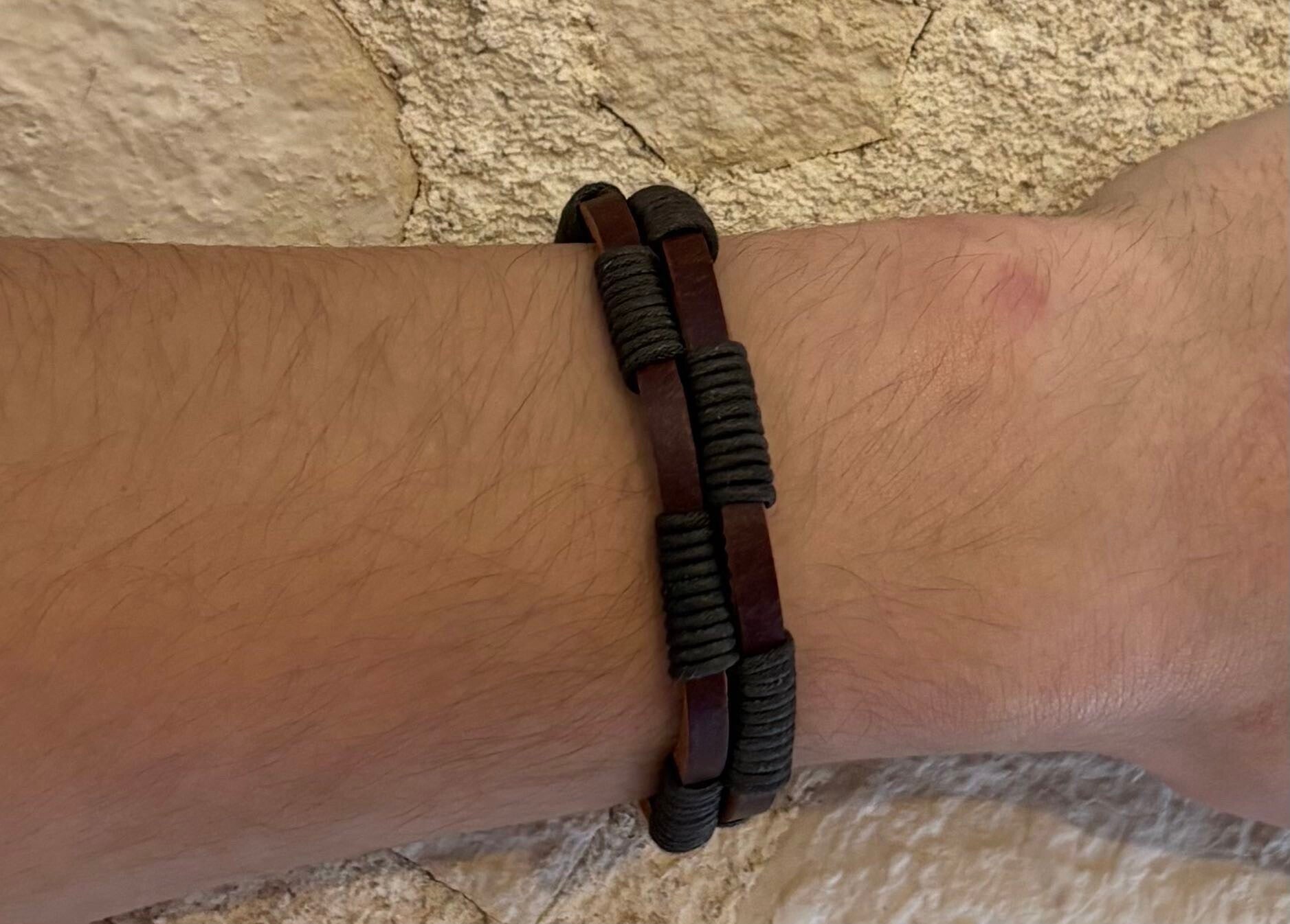 bracelet homme. Avec deux belle couleur. Le noir et le marron fermoir aimanté. Ne terni pas dans le temps. Résistant à l'eau. Fabriquer en acier inoxydable