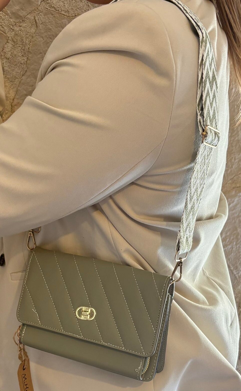Sac avec un porte feuille intégré petit mais très pratique. Sa couleur rose et sa bandoulière rose avec des détaille blanc