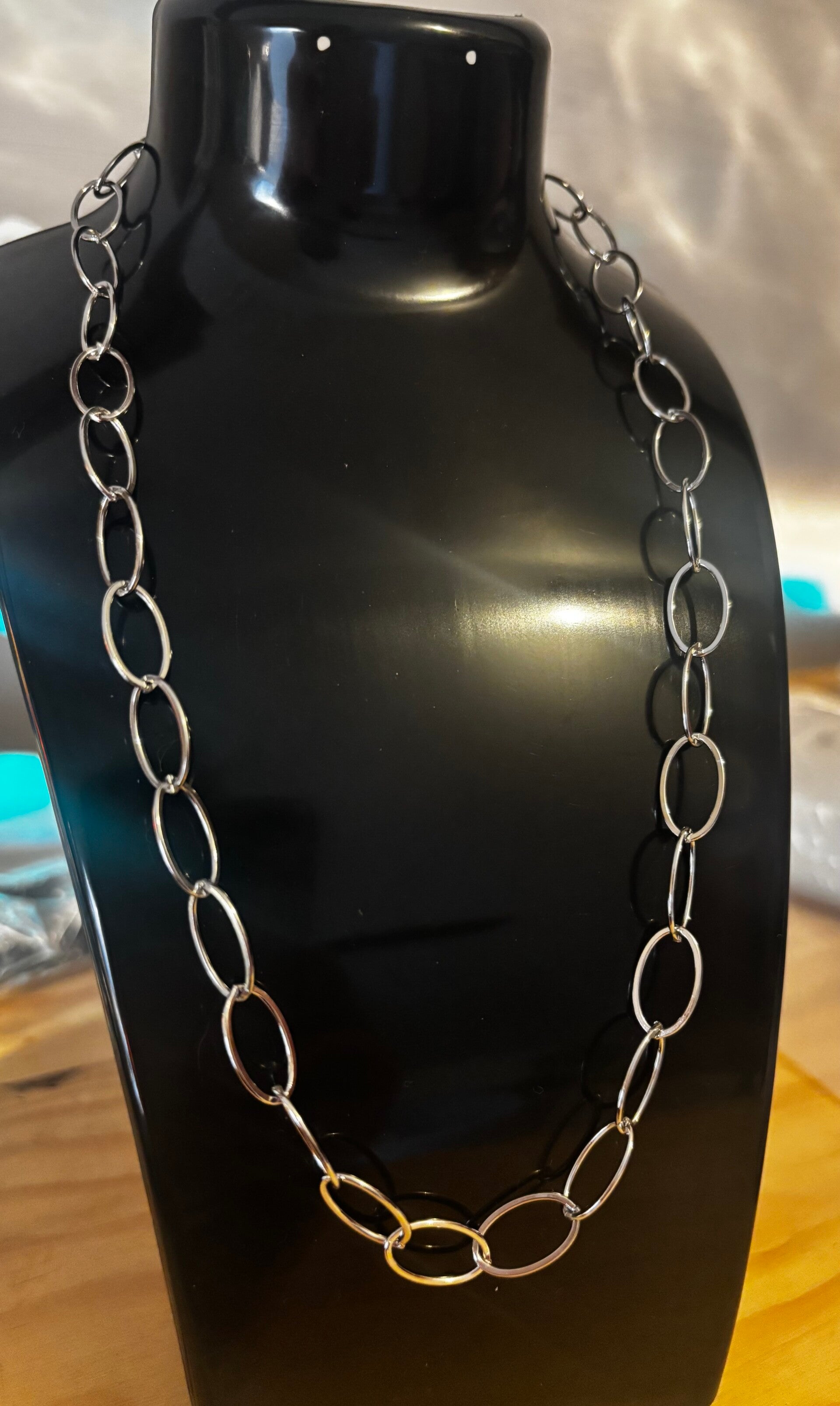 Magnifique collier avec des grosse maille ouverte. Ultra résistant. Collier en acier inoxydable. Résistant à l'eau. Ne terni pas dans le temps.