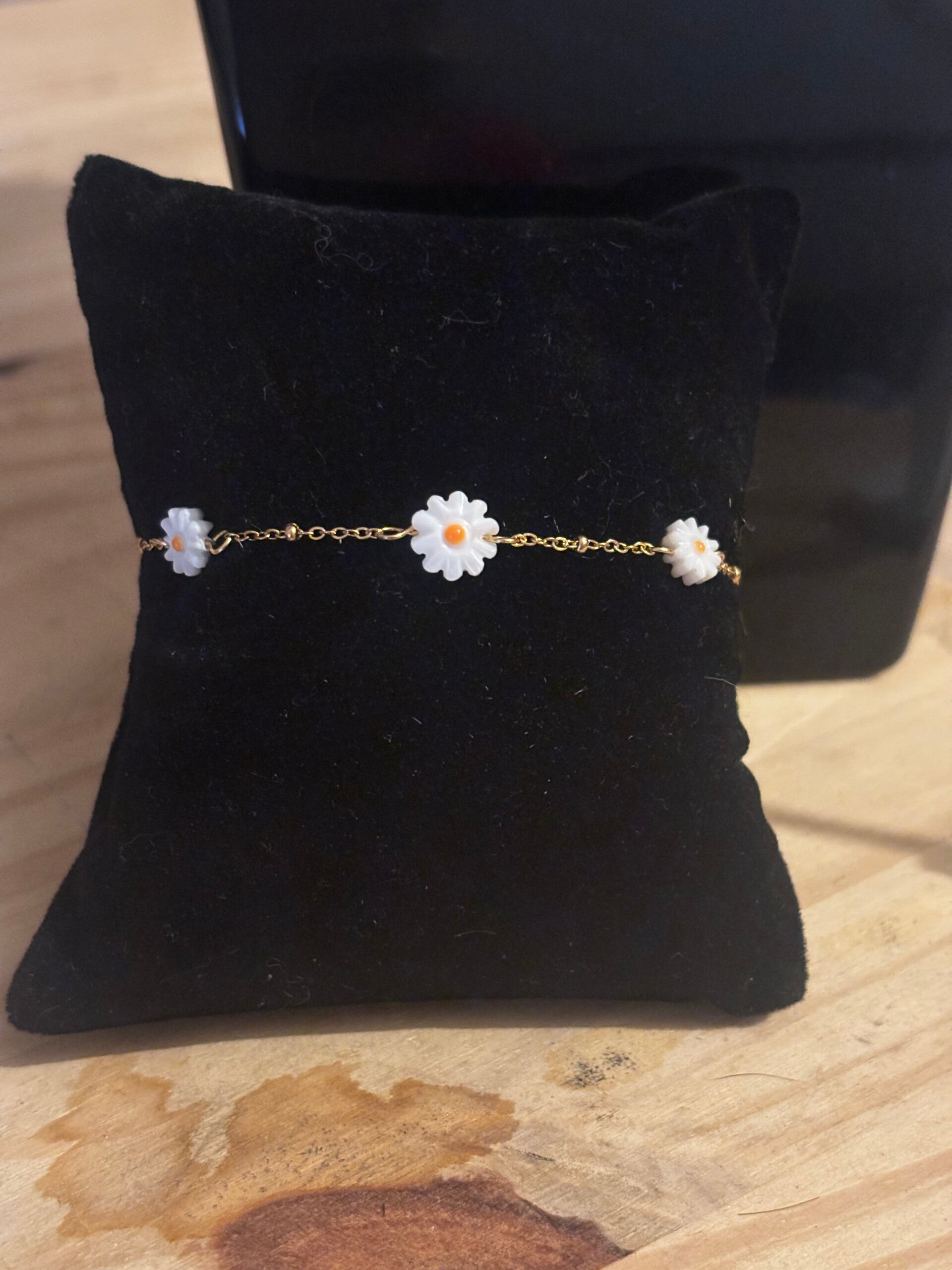 bracelet pâquerette avec sa belle couleur blanche et jaune. Parfait pour l'été. Résistant à l'eau. Ne terni pas dans le temps bijoux fait en acier inoxydable.
