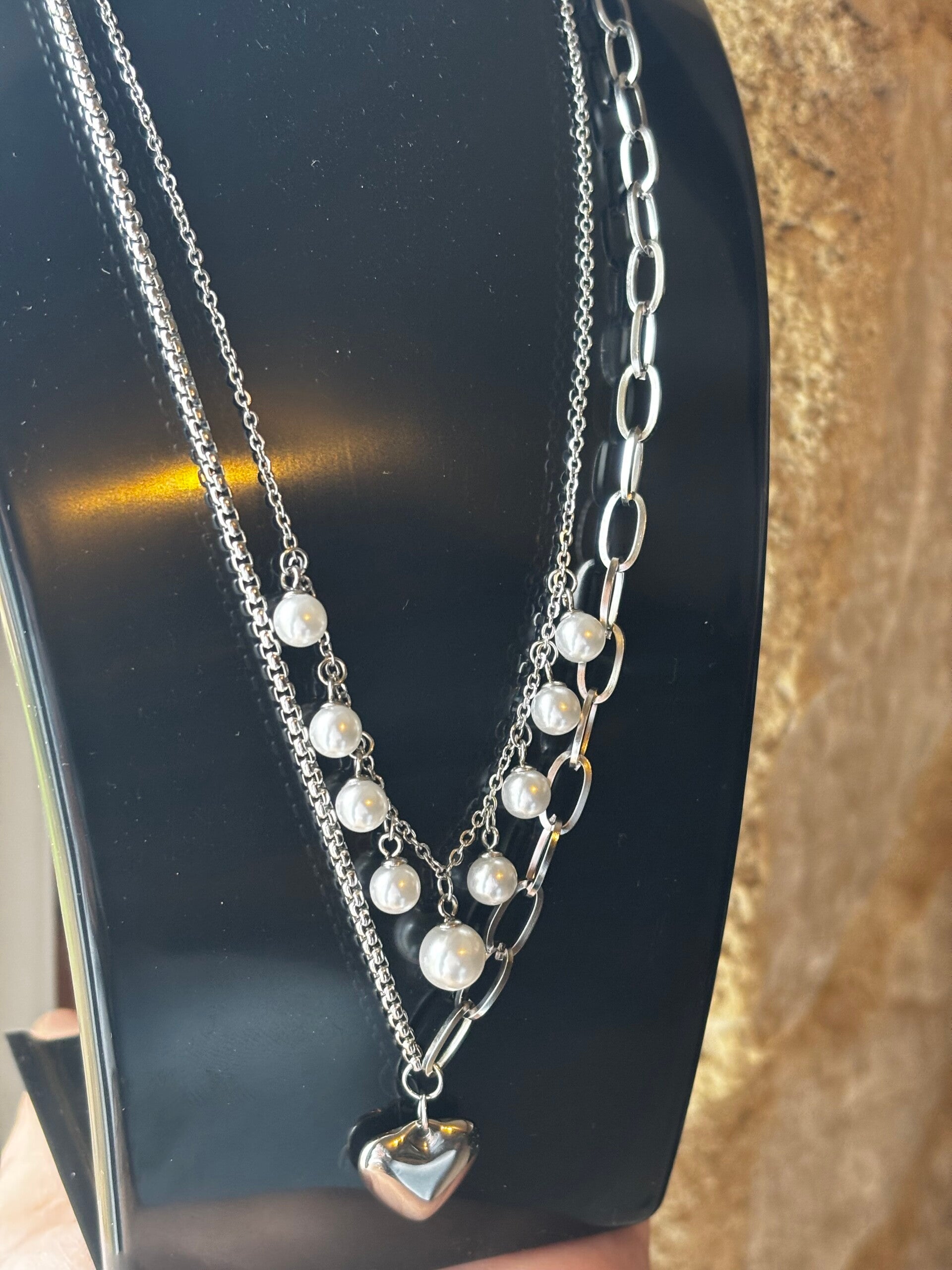 Magnifique collier double. Cœur. Avec différente maille. Fabriqué en acier inoxydables. Résiste à l'eau.ne terni pas dans le temps
