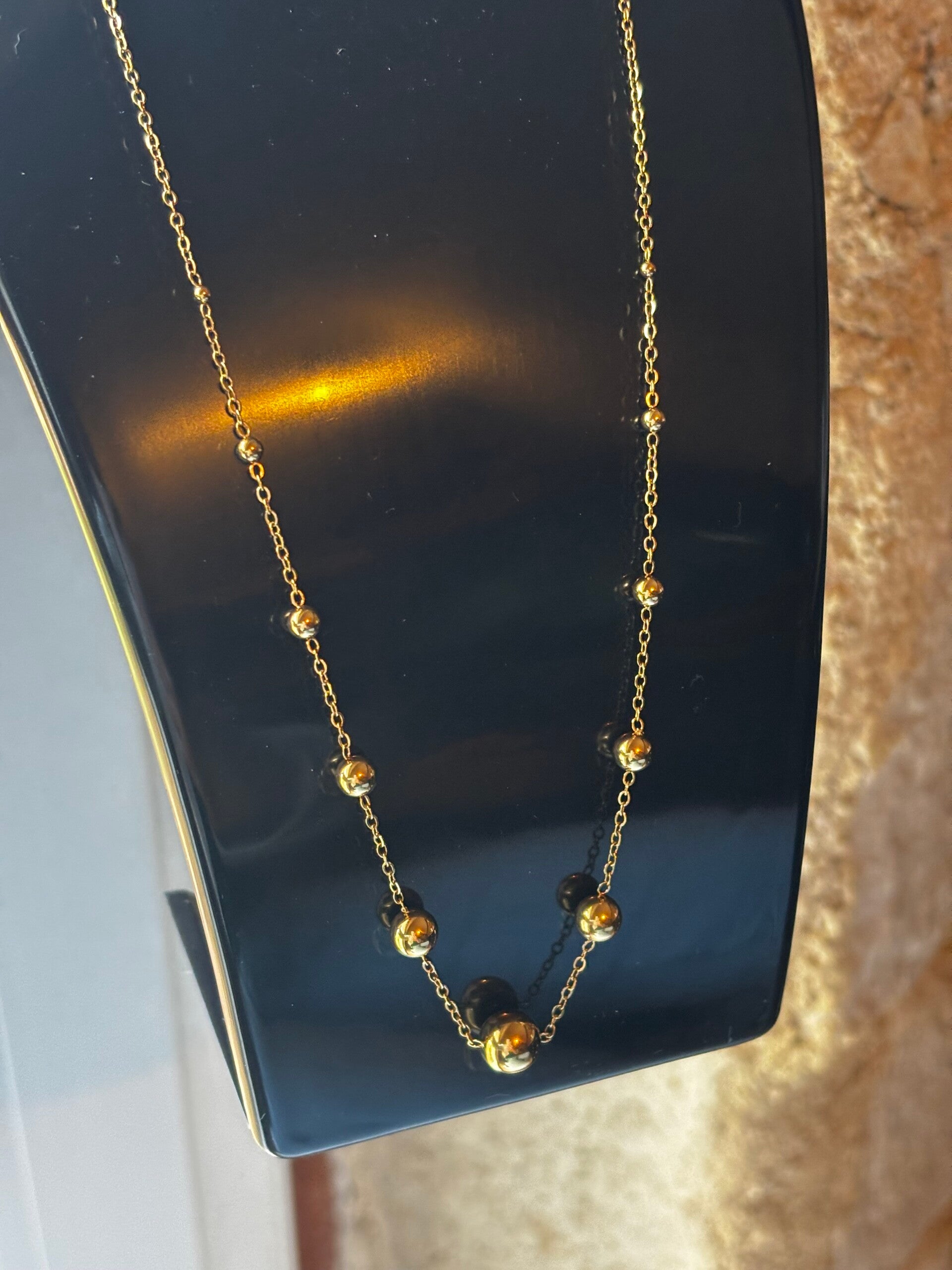 Magnifique collier bille. D'une brillance absolue. Fabriquer en acier inoxydable. Ne terni pas dans le temps et résiste à l'eau.